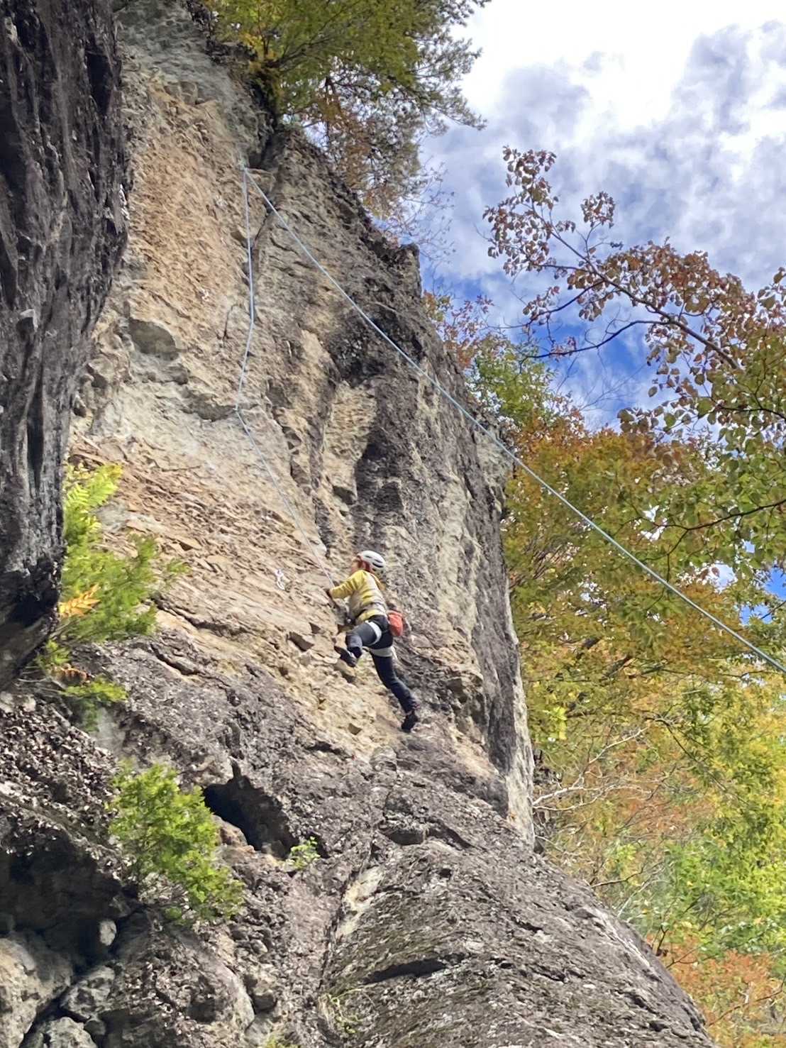 次に森の唄、ちょっと難しいがまあまあ何とか昇れた。次からはお上手な二人のグレードに合わせたルートなのでどれも難しかった。