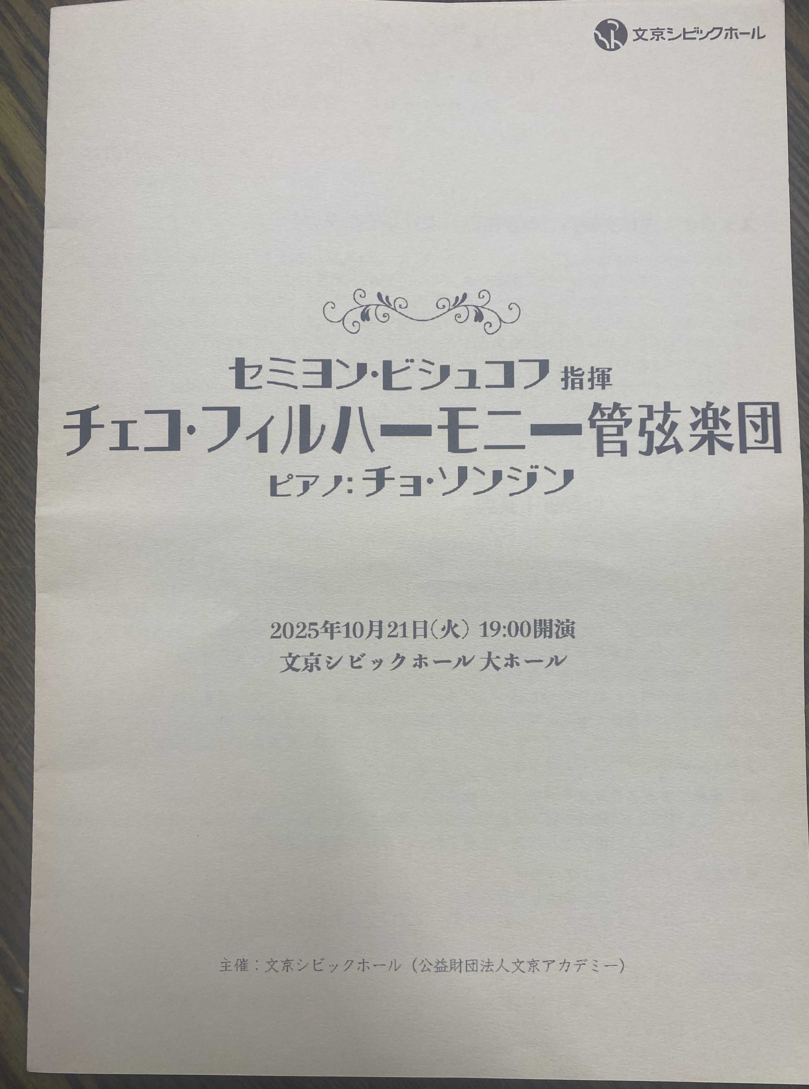 夜はチェコフィルハーモニー管弦楽団のコンサートを聴くため、文教シビックホールまで出かけた。