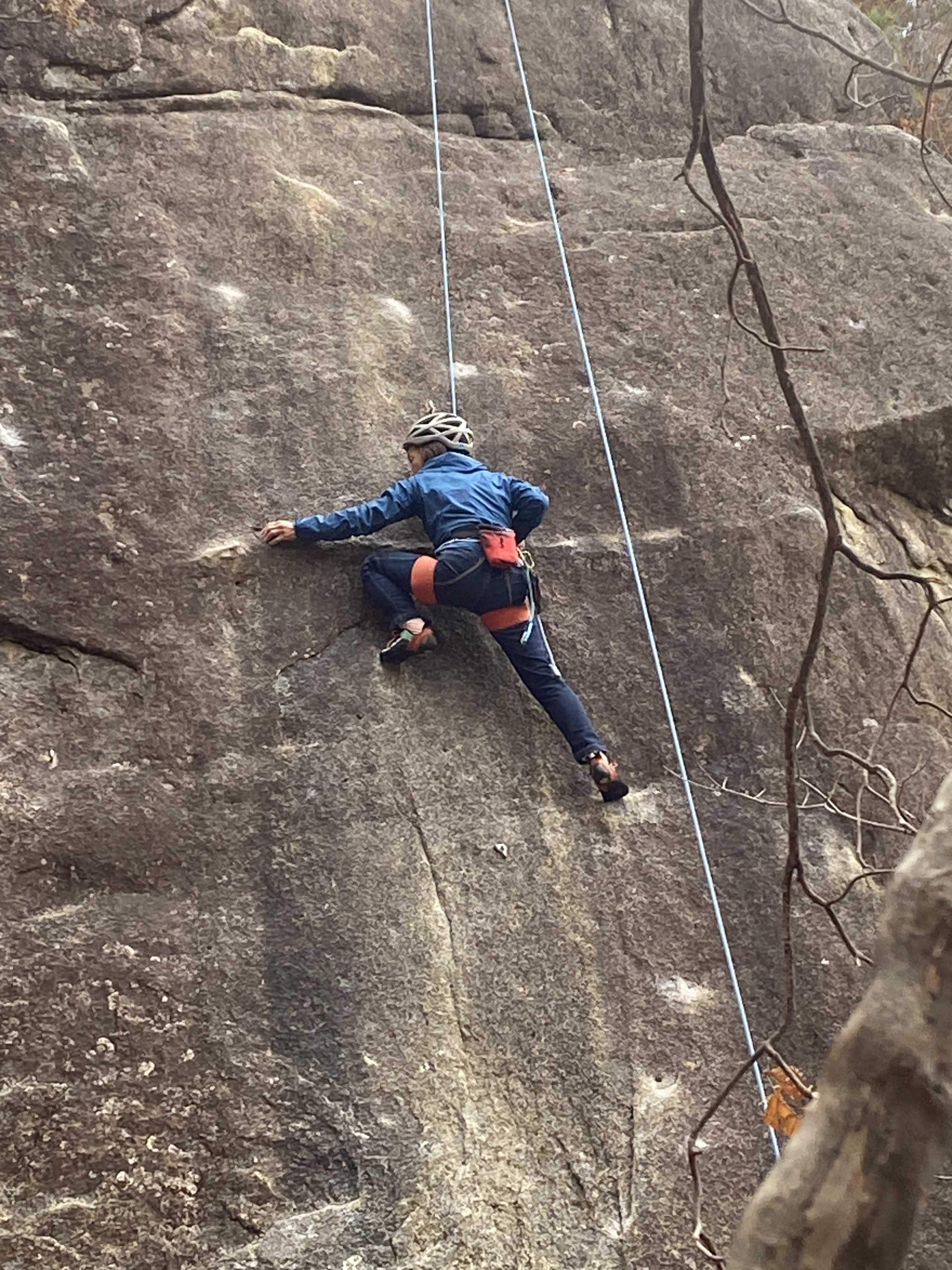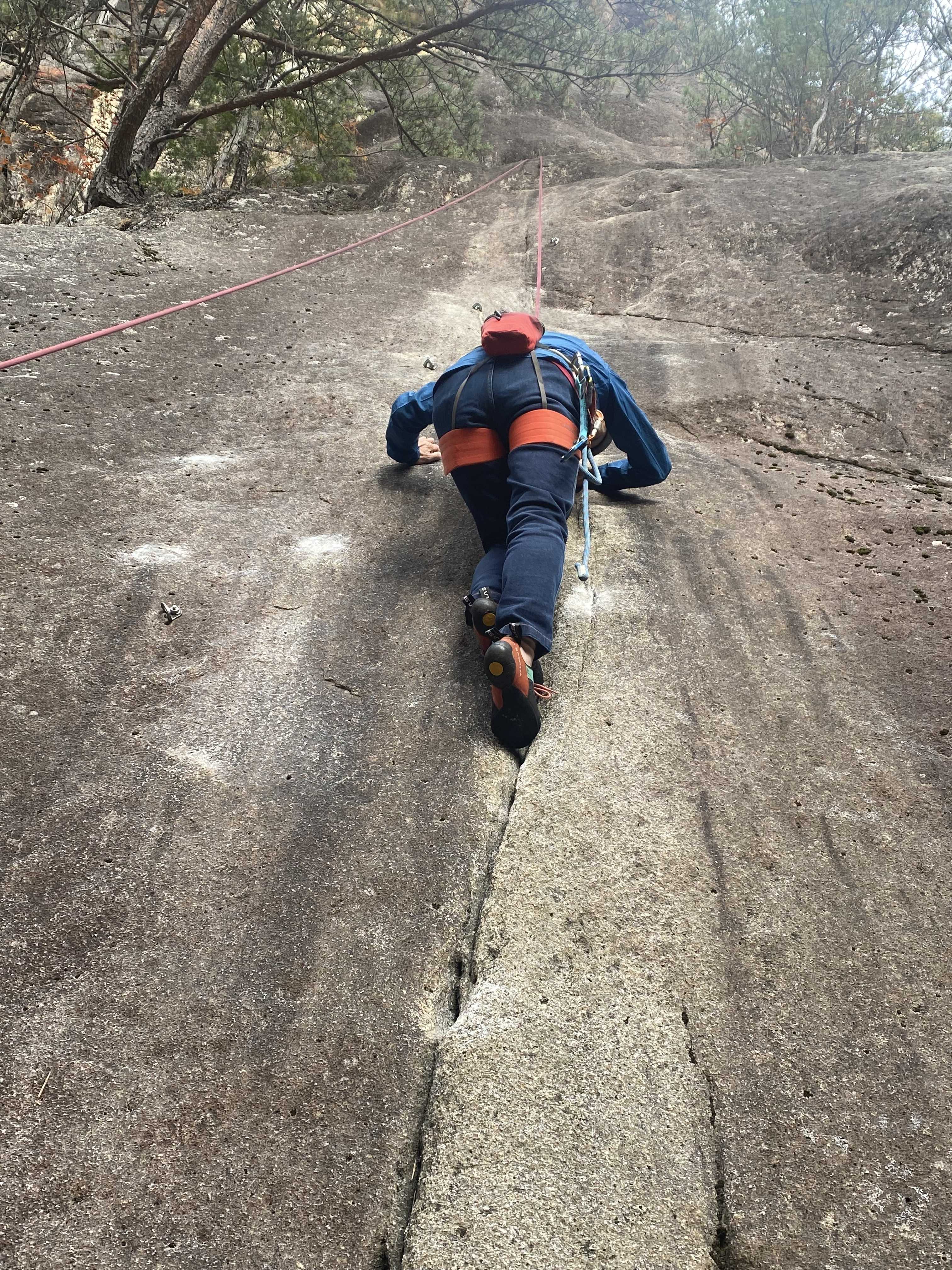 他の皆さんはその上にある「PTA」という5.11bのルートを攻略していた。私はこのルートを観たのも触るのも全く初めてで珍しかった。5.11というグレードなんかできる筈はないのだが、経験することが