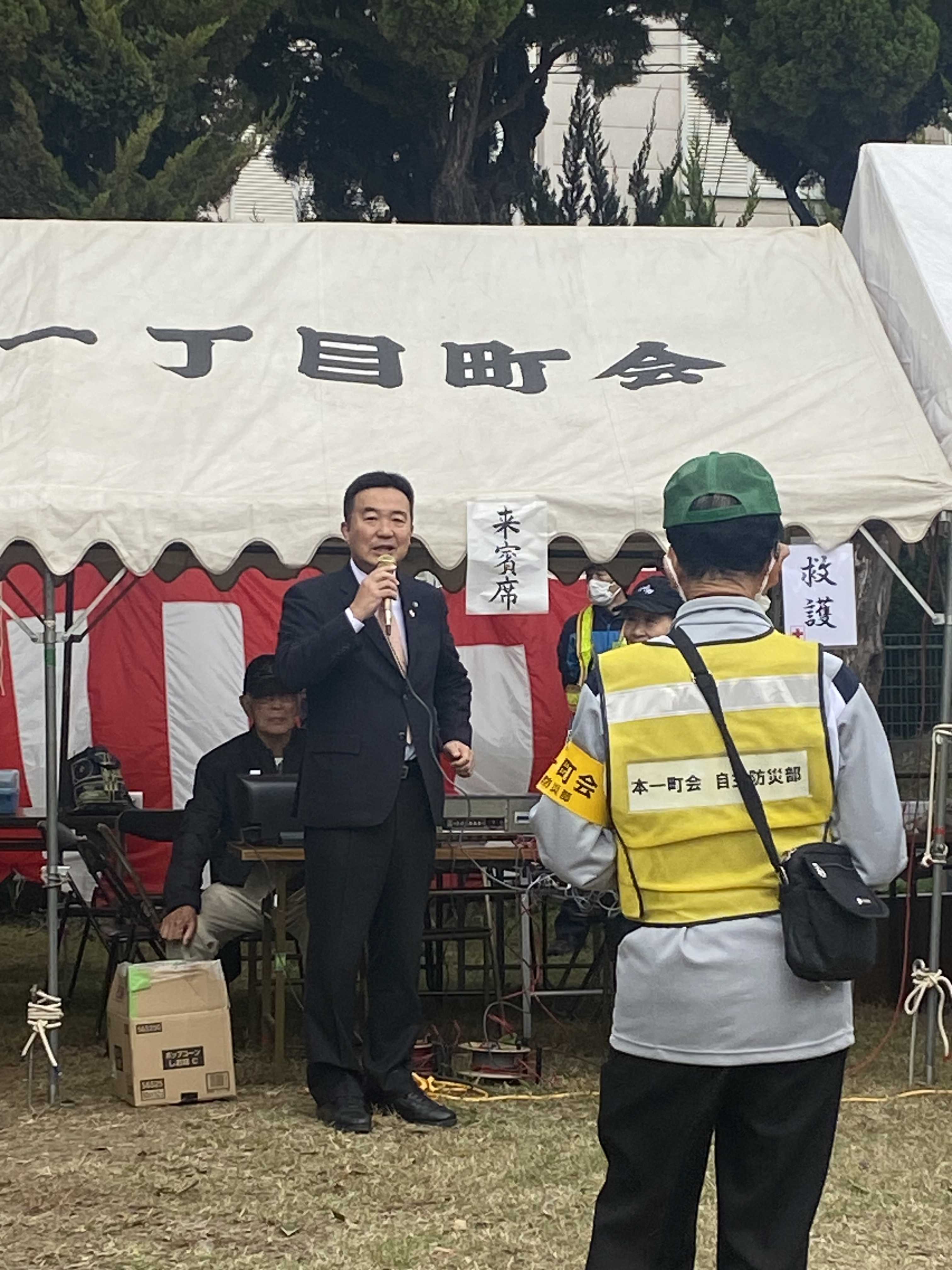 お揃いの服装を着た皆さんや町内会の役員のような皆さんがイベントの担当部署について仕事をしている。そのうち、市長さんの挨拶もあった。