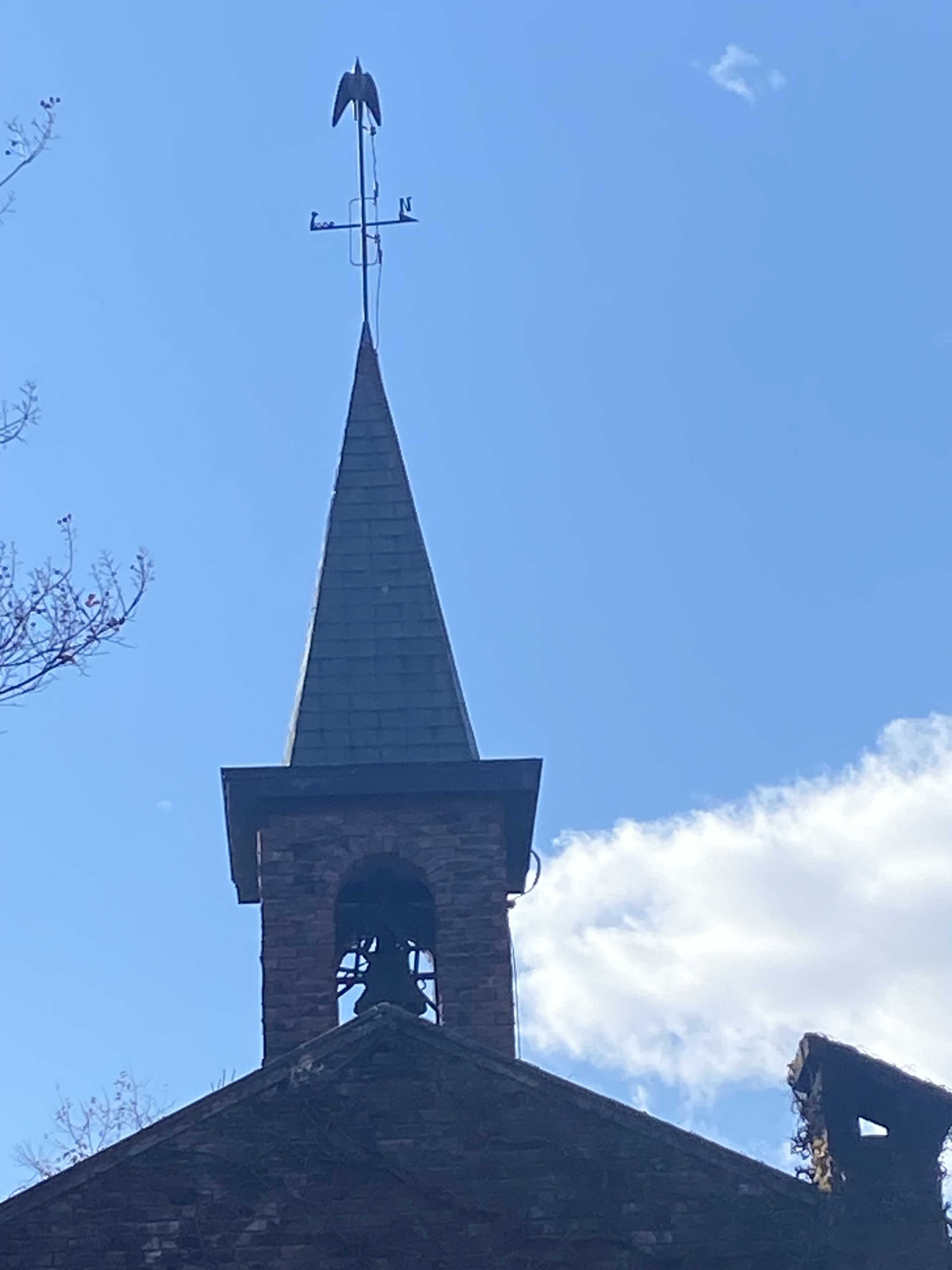 碌山美術館 青空に鐘と尖塔 美術館側面も美しい