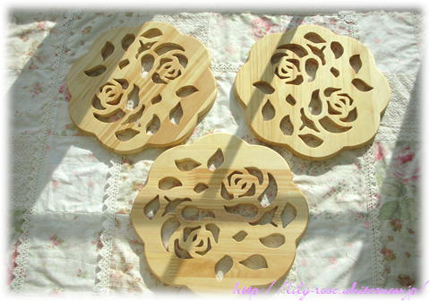 定番になりつつある、薔薇のプレート今回はオーダーが3点あって、なかなか3つそろった画像は撮れないかな??・・と撮ってみました♪9ミリ厚の薔薇のくり貫きは、20ミリ厚のものより作りやすいのですが、相手は天然木の集成材!やはり思わぬヒビが制作中にでてしまうことも。。(T_T)今回も実は完成間近にヒビを発見( ̄▽ ̄;)!!ガーン本当は4つ作ったんです(涙)残念でしたが、よ~くみないとわからないので、自分用に・・(* ̄∇ ̄*)大きさ・・約23センチ1度手にとってみてもらった方からの再オーダーになりました!気に入って頂けた事がすごく嬉しいです♪話は変わりますが・・・ブログ管理ページ、少し使いやすくなりましたねフォトも別枠がでるようになったし♪メッセージや日記の更新がわかりずらかったから、どうしよう??って思ってました^^良かった~ヽ(^◇^*)/ 3月までオーダーストップします・・・(((( ノ_T)予想以上のオーダー、イベントへ向けて全力疾走中(時々休憩 笑)なので、いつもなら小物の場合は受けていましたが、メールの対応なども遅くなりそうなので、3月までは受けない事にしました。。。本当にすみません(T_T)pres-deさんのイベントに参加します♪お近くの方、是非宜しくお願いします^^:*+*+:*+*+:*+*+:*+*+:*+*+:*+*+:*+*+:*+*+:*+*+:ブログランキングに参加しています♪(m。_。)m現在20位~!クリックありがとうございまーーす♪ちょっぴり上昇?!(笑)イベントに出品する予定の糸たてつきハートのピンクッション♪久しぶりにたくさん作っています^^薔薇柄や、スラブリネン、カントリー風等々、また紹介させてくださいね!お気に入りの物がありましたら、お申し付けください(o^-^o) ダブルハートのピンクッション、私的にはお気に入り??(*≧m≦*):*+*+:*+*+:*+*+:*+*+:*+*+:*+*+:*+*+:*+*+:*+*+: