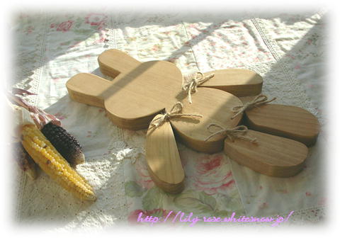 布のような柔らかい感じはないけれど、木の温もりのある、可愛い作品をつくりたいな~って思ってできたうさちゃんです大きさは20~30センチくらい??(計ってない・・(>▽<;;)壁にかけられるよう、希望があれば、耳か頭に穴を開けてもいいかな??突然作った割には気に入った作品です^^さらにUPを撮ってみました♪厚さ18mmの天然木をくり貫いて、麻ひもでつないでいます。色は、落ち着いたワトコオイルのミディアムウォールナット☆リボンにしないで、ただ結ぶと、もっとナチュラルな感じに・・・(o^-^o) 3月までオーダーストップします・・・(((( ノ_T)予想以上のオーダー、イベントへ向けて全力疾走中(時々休憩 笑)なので、いつもなら小物の場合は受けていましたが、メールの対応なども遅くなりそうなので、3月までは受けない事にしました。。。本当にすみません(T_T)pres-deさんのイベントに参加します♪お近くの方、是非宜しくお願いします^^:*+*+:*+*+:*+*+:*+*+:*+*+:*+*+:*+*+:*+*+:*+*+:ブログランキングに参加しています♪(m。_。)m現在20位~!クリックありがとうございまーーす♪ちょっぴり上昇?!(笑)11月に予約していたCHECK&STRIPEさんのタグと綾ネームが届きました♪あまり使わないかな??って購入してなかったんだけど、たま~に作る??小物につけようと思ってます^^でも、先日、プレドゥさんで、またまた可愛いタグを発見\(*T▽T*)/使いやすそうなYUWAさんのリネン生地も再入荷されたので、早速オーダーしちゃいました♪ひつじさんのタグセットやミシン柄・花柄等、たくさん可愛いのがあるんです(* ̄∇ ̄*)一度覗いてみて下さいね!!ポチっとしてしまいますよ~(笑):*+*+:*+*+:*+*+:*+*+:*+*+:*+*+:*+*+:*+*+:*+*+: