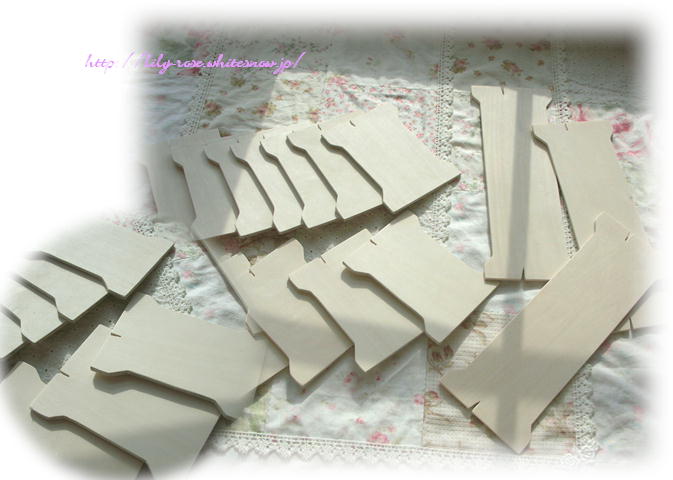 お友達から、未塗装のものでいいから、できるだけ低価格でたくさんの糸巻きが欲しい♪というオーダーを受けまして、作りましたシナ合板を使って作っています。角もとって、サイディングも軽くしてありますので、すぐに使えます♪ペイントや塗装をご自身でしたい方にもいいかも(* ̄∇ ̄*)厚さは3~5ミリです☆縦長の物も、カゴなど深めのソーイングボックスを使っている方などには使いやすい形ですよね♪こちらは、下にも切り込みを入れてみました(^ー^* )イベント用の小物達です最終的に決めたものではありませんが、着々と進行中♪初のイベント参加なので、ショップ価格よりお安くする予定です☆お近くの方、是非足を運んでくださいねヨロシクヨロシクリクエストがありましたらメッセ入れてください^^3月までオーダーストップします・・・(((( ノ_T)予想以上のオーダー、イベントへ向けて全力疾走中(時々休憩 笑)なので、いつもなら小物の場合は受けていましたが、メールの対応なども遅くなりそうなので、3月までは受けない事にしました。。。本当にすみません(T_T)pres-deさんのイベントに参加します♪お近くの方、是非宜しくお願いします^^:*+*+:*+*+:*+*+:*+*+:*+*+:*+*+:*+*+:*+*+:*+*+:ブログランキングに参加しています♪(m。_。)m現在22位~!クリックありがとうございまーーす♪下降中(笑):*+*+:*+*+:*+*+:*+*+:*+*+:*+*+:*+*+:*+*+:*+*+: