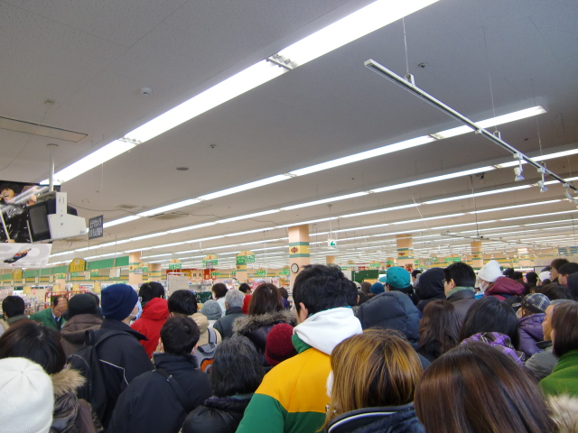 雪が積もっていてとても寒いです。食べ物がなく、仙台市民は長い列を作って連日買い出しを行っています。今日は生協に5時間並びました。途中から雪が降り始め「この雪は放射能大丈夫なのかな?」と思いながら、でも仕方がないのでそのまま降ったりやんだりする雪にため息をつきながら並びました。手に入れたのはミカン6個、肉1パック、ガスコンロ用のガス2本、小麦粉1袋、カットバン、ポン酢、小さいラップ、水1本。食べ物がないです。販売は会議室にあるような長いテーブルの上に置かれている商品を一人10個まで購入できるという方法でした。食べ物がないのでみんな仕方がないから缶ジュースとかミカン(ミカンは3個で1つとカウント)を買っていました。ポン酢より他の食べ物がほしいのですがなかったので何かに使えるかもと思い購入しました。こんな日がくるとは思わなかったな。私はまだ恵まれた方ですから我慢しましょう。 高齢者が心配です。マンションには一人暮らしをしている方が多いらしいです。なにかしてあげたいけれど自分の家族の分で精いっぱいだと列に並んでいた女性が話していました。高齢者はこのような寒さの中で5時間も並んでいることはできないと思います。生協の販売では途中から妊婦さん、乳幼児~4歳のお子さんを連れた方は先に店に入れるようになりましたが高齢者は対象ではありませんでした。買い物を終え私が帰宅するときに最後列に並ぼうとした白髪頭のおじいさんが「販売終了」という札をもった職員の方から断られていました。私は「高齢者なんだら販売してあげたら」と声をかけましたがおじいさんは帰されていました。もう一度「高齢者ですよ!」と大きな声で言いましたがスルーされました。おじいさんは自転車をひいて戻っていきました。少ししてから気になって、おじいさんにミカンをあげようと後から探したのですが見つかりませんでした、後悔です。「このままじゃダメだ」店に戻り夫は表にいた店員さんに、私は裏口の店員さんに「高齢者も乳幼児や妊婦と同様に扱ってほしい」と頼みました。「70代はまだ若いけど、80歳代と思われる方には融通を利かしてほしい、先ほど白髪頭に高齢者の方が入店を断られていた、助けてやってください」こんな偉そうなことを言ってとっさにミカンをあげなかった自分の小ささ。馬鹿馬鹿馬鹿馬鹿、泣けるね。