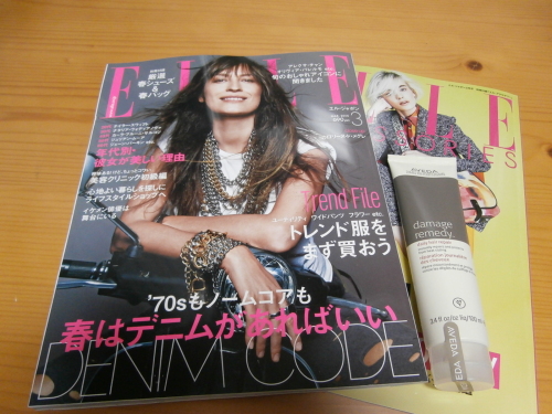 定期購読を開始した「ELLE ・ジャポン」が届きました。年間購読料が2500円という格安限定価格と3800円のトリートメントがプレゼントという特典にまんまと乗せられました。1冊200円は安いわぁ。中身も料理本の「エル・ア・ターブル」より面白い気がします。有名人のゴシップも多いけれど中々のハイファッションだし自立した女性の生き方が上手く書かれている気がする。 今回の表紙はカトリーヌ・ド・メグレ。フランス人です。名前に「ド」がついていると思ったらブルゴーニュ地方の貴族の末裔の父&ポーランド王室の血を引く母の元パリで育ったというお嬢様です。「パリジェンヌのつくりかた」というパリジェンヌについての本を執筆しているのですが、昨年の11月に日本でも翻訳されて販売されたという情報を得てさっそく紀伊国屋に行ってきました。ミーハーだわぁ。 私は今さら「パリジェンヌ」に目を輝かせる年でもありませんが・・・(失笑)元オリーブ少女の私にとって素通りできない本ですね。でも忙しくてまだ読んでいないんですよ。じっくり時間をとって楽しみたいと思います。