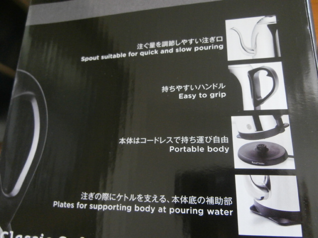 ラッセルホブスのカフェケトルを買いました。電気湯沸かし器です~。以前はティファールを使用していましたがラッセルホブスの方がデザインが素敵です。お湯を沸かす時の沸騰音や時間はファールとの差を感じません。ケトルの表面が熱くなり危険なのではと思いましたが、実際使用してみると熱さが気になりませんでした。・沸騰時の自動電源OFF・空炊き防止機能・カルキ除去機能 付きです。 このそそぎ口がgood!お湯を注ぎやすいです。サイズは0.8L 1.0L 1.2L と3サイズありますが1.2Lを購入しました。大きさで微妙に見た目が違うのですがどのサイズも素敵です。実査使用してみて購入するときは1.2Lにすると大は小を兼ねて便利だと思いました。