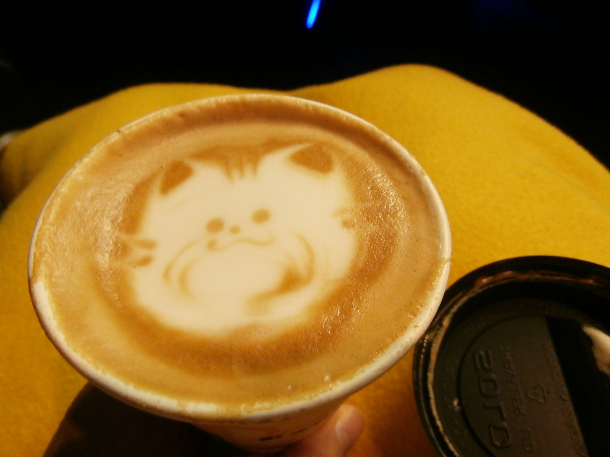 夫が猫のカフェラテを買ってきてくれました。かわいい~器用ですなぁ。カップの底で底で小さくなってしまったネコちゃん。