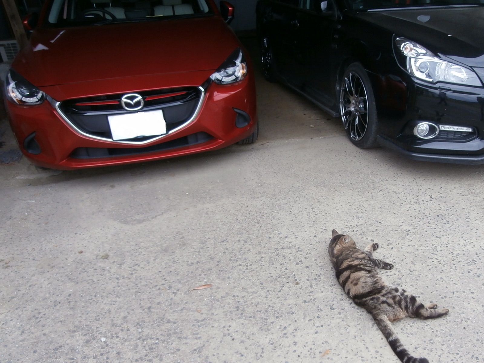 出掛けようとしたら車庫の前に猫が寝ころんでいました。近所の飼い猫~。どこの家の子か不明。行動範囲が広いんです。人懐こい子です。うしろ姿もかわいいよ。でっかいのです。出掛けた先の帰りに回転ずしに寄ってきました。お勧めのまぐろセット。