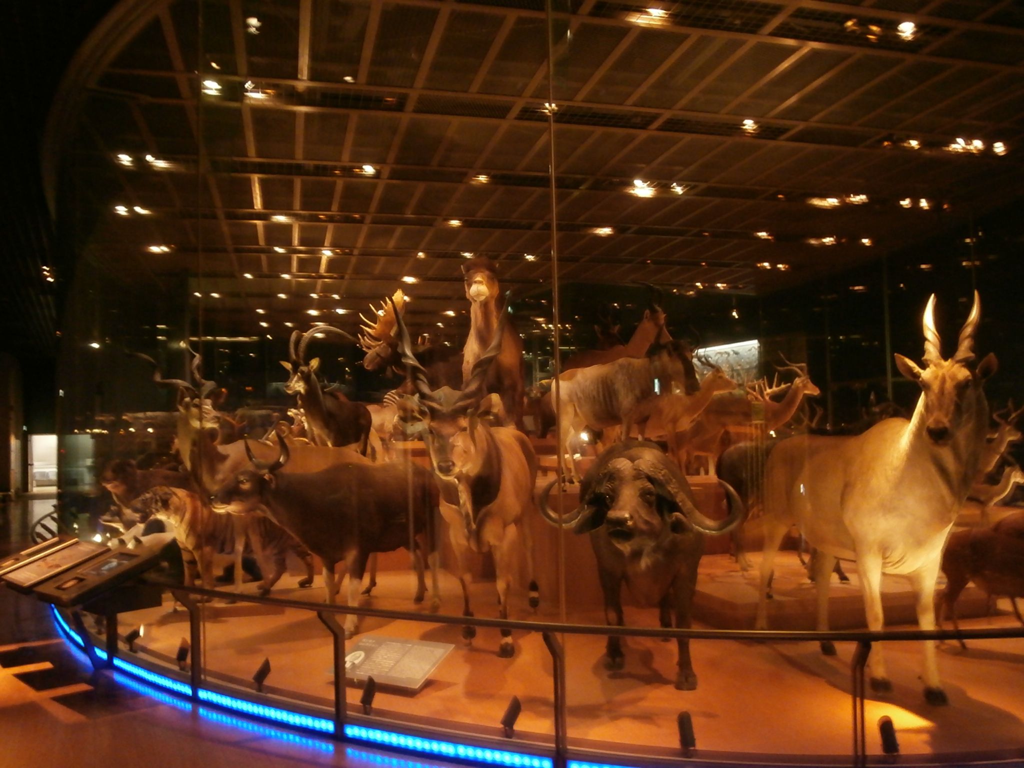大英自然史博物館展の後に常設展示を見学。入館時間が18時頃だったため人が少なくて貸切状態でした。はく製のコーナー。大ヨシモトコレクション。ハワイで成功した「ヨシモト氏」寄贈の貴重な哺乳類のはく製です。パンダまでいますよ。トラがこっちを見ている!ガオーと声が聞こえそうだ。こんなすごい展示が常設されているとは驚きでした。そして人がいないことにも驚き。昼間の時間だったらお子様連れの家族でいっぱいのはず。階段があって登ると角度を変えて上からも見学することが出来ます。ユキヒョウかしら?どうしても猫好きの私にはネコ科に目がいってしまうよ。ガラスの板の上を歩くコーナーがありました。誰もいなかったので歩きはじめに少し緊張しました。ここ歩いていいの?割れたらどうしよう、怖いなと思ってしまった。こんなにすごい展示なのに私とカップルの3人しかいませんでした。夜間展示はすごい事になっていますよ。骨標本。恐竜。これは江戸時代の木でできた医学生向けの学習用の木骨と呼ばれるものです。かなり精巧に作られていました。昆虫コーナー。虫は恐いから写真は1枚で終了。癒しの植物たち。美しい展示です。海の生物コーナー「ダイオウイカとアナコンダ」変なものは写真に収めたくなるね。ここから写真はいっきに宇宙に飛びます。人工衛星を軌道に乗せるエンジン。人工衛星 「降水レーダー」意外に小さい。国立科学博物館は年間の来館者は221万人だそうです。フーコーの振り子なんかもあって興味深かったです。石ころ好きの私にはショップも魅力的です。今回はアメジストを買ってきました。ギザギザの状態のアメジスト。丸く磨かれたものは見かけるけどさすが科学博物館。売り物も本格的じゃないか。二酸化珪素の溶け込んだ熱水が火山岩の隙間で冷えて石英の結晶になり、それが水晶の結晶に成長していく間に不純物(鉄イオン)が雑じり紫色になるそうです。きれい。素敵ですよね。