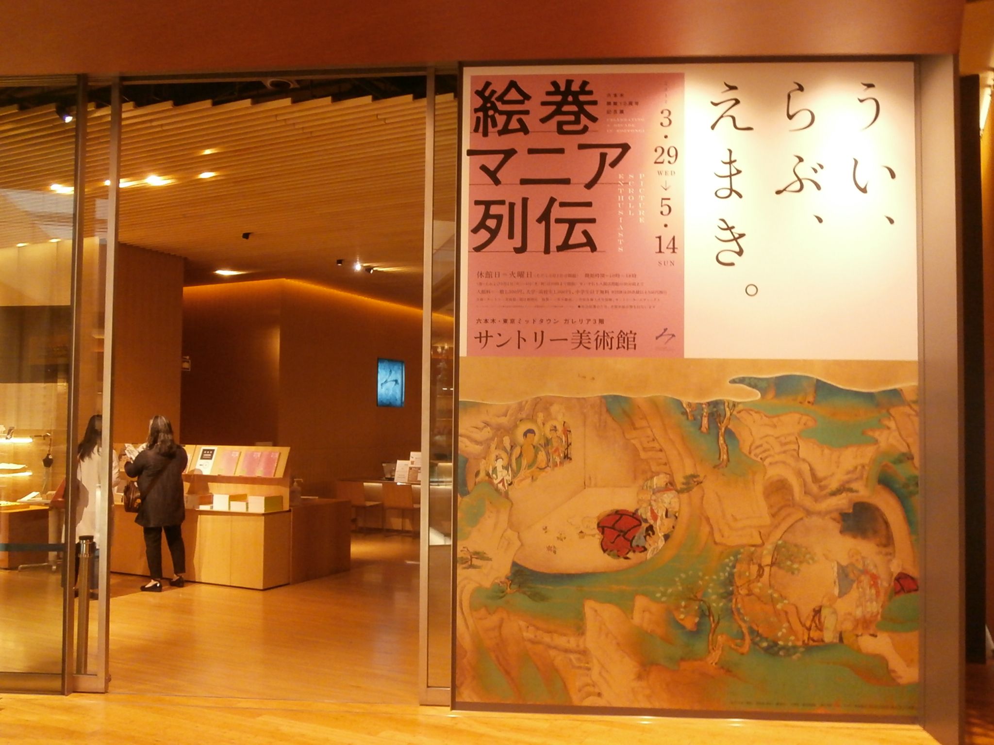 サントリー美術館では「絵巻マニア列伝」が開催されています。平安時代から江戸時代までの絵巻が展示されています。絵巻って現代でいうなら「絵本」や「漫画」のような感じでもあったのかな。くずし文字が読めなくても説明がセットしていあるので理解することが出来ました。展示が話の途中で切れている絵巻があり続きが気になります。後白河院 花園院 後崇光院などの歴代絵巻好きの鑑賞した作品が揃っていました。一部の身分の高い特権階級だけが鑑賞することが出来た作品を一般人の私たちも鑑賞することが出来るようになった現代。自由、権利、平等を追い求めた先人の努力で素晴らしい変化を遂げた時代に私たちは住んでいるのだなぁと絵巻を見ながら思いました。国宝や重要文化財のオンパレードで宮内庁所蔵品も多かったです。「花園院の日記」や「紫式部に絵巻を依頼しようとしていた手紙」があり、歴史上の人物にふれ合えたような不思議な気持ちになりました。本当に生きてたーって感じ。ミッドタウンの芝生広場には「富士山」が期間限定で出現しています。夜はライトアップされるらしい。芝生では翌朝に「朝ヨガ」が開催されることになっていました。ヨガに参加すると特設会場のハイボールミッドパークカフェでハイボールをお安く飲めるようですよ。