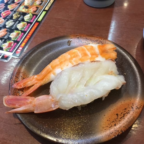 大きなエビ🦐 回転寿司は安くておいしくてガリが食べ放題なのがいいなぁ!(^_^)