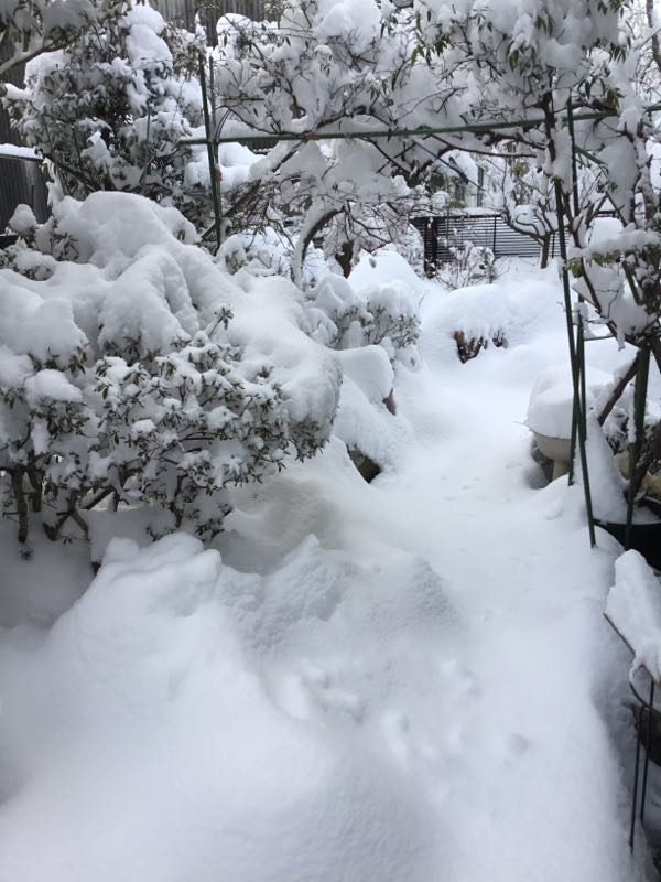 雪が降りました。☃️ 庭がすごいことになっている。🙀