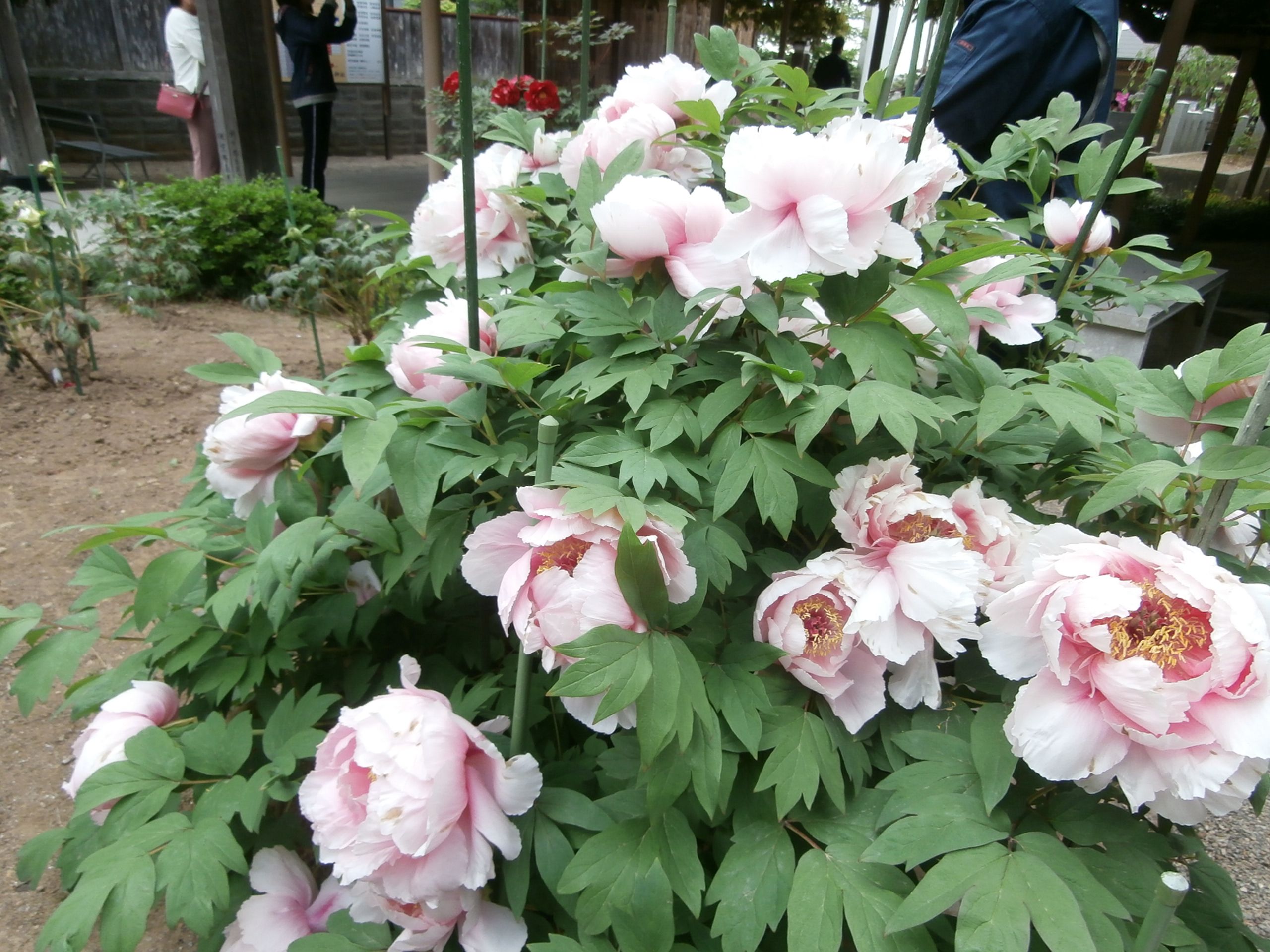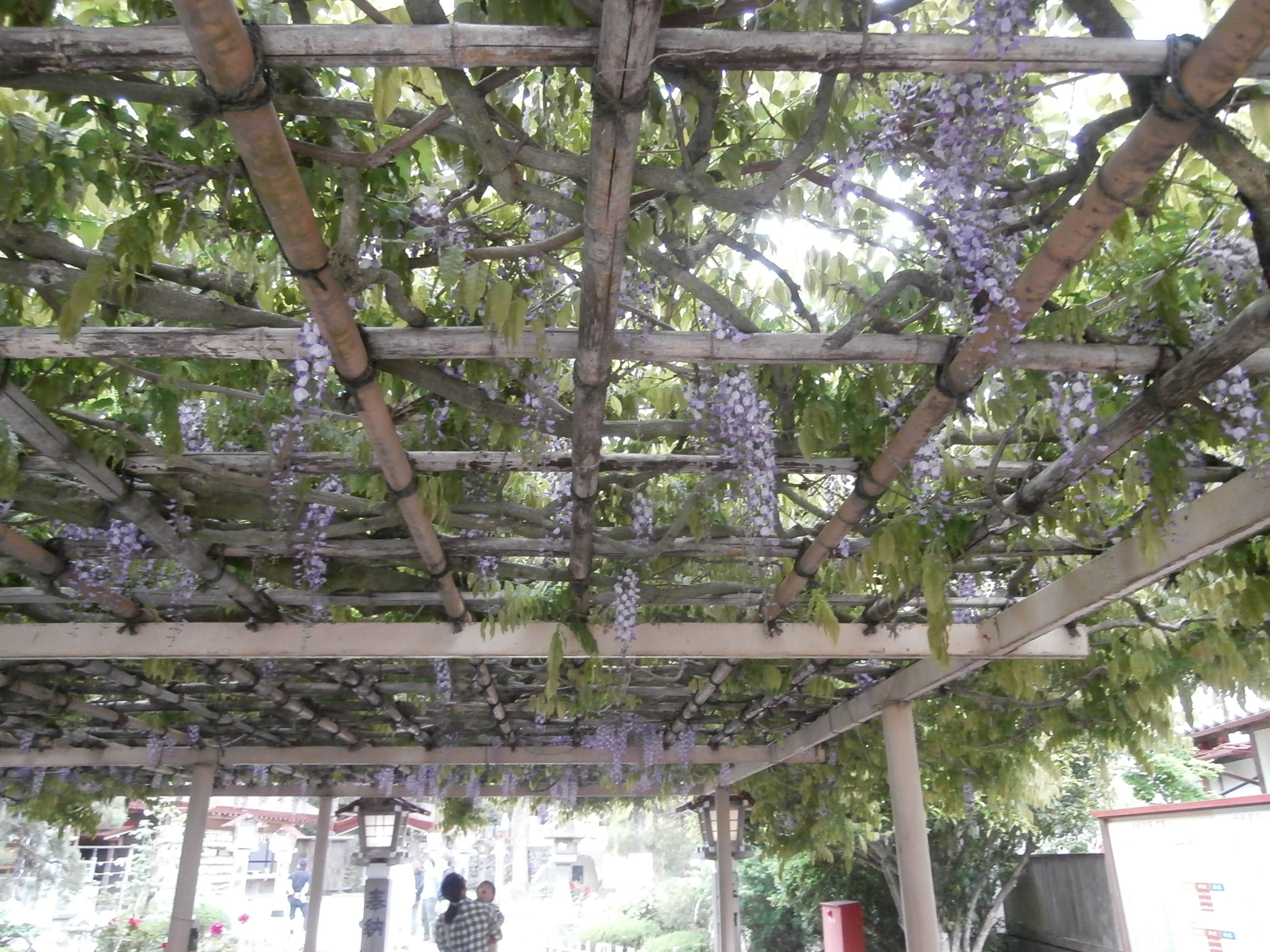 金運アップのご利益のある神社です。弁財天が祀られています。ヘビのおみくじがありました。ここは藤棚と牡丹が有名な神社です。樹齢300年の藤の木です。キレイでした。甘い香りでいっぱい。300歳でこんな美しい花を咲かすのだからすごいですね。牡丹も負けていませんよ。牡丹の花を報道したいのか取材クルーが来ていました。有名な牡丹園は満開までもう少しかなぁ。