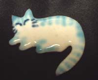 おまけ:一緒に出てきた、同じく七宝焼きで自分で焼いた猫のブローチ~(^^)。銅版を好きな猫の形に切り抜いて、作りました。そういえばこの手の猫型ブローチはいろんな形してる猫を山ほど作った覚えが、、、長いこと七宝焼きもしていないな~、、、と久しぶりにやってみたくなっています♪