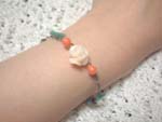 薔薇の形に彫ってある珊瑚とピンクの丸玉珊瑚、その他ビーズを使って自作したブレスレットです♪