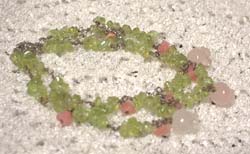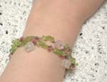 これもやっぱりオクで落とした手作りブレス♪♪これも"春~♪"という雰囲気が大好きなもの。ローズクォーツのチューリップが3つ、付いています♪
