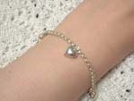 これは銀で出来たブレスレットで、小さなぷっくりハートが5つ、付いてるのと、端っこに小さな小さな銀で出来た鈴がついていて、シャラシャラ可愛らしい涼やかな音で鳴ってくれます。
