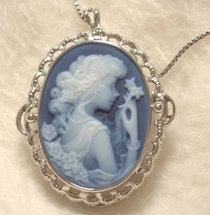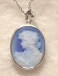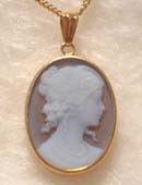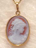 赤いメノウのも一つは欲しい、とオクで落とした1.6×1.2cm、とこれもとても小さなカメオのペンダントです。この夫人像は横顔が憂い含んだ好きな顔で、もう少しくっきりしたこの絵柄のが欲しいなあ、という気がしています。