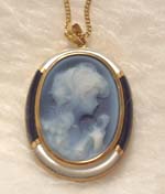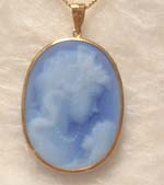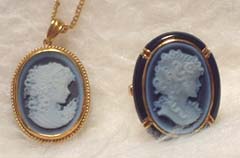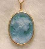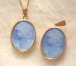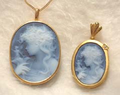 右側の後に手にした青いカメオの方は色の違いもくっきりしていて彫りも切れよくてとてもお気に入りなペンダントです。(どれも1.8×1.4cmくらい)