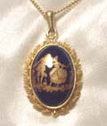 カメオ以外でも、やっぱり絵のついたジュエリーって気になって、、左はフランスの有名なリモージュ焼きペンダント(たぶん踊るひつじさんのブローチとお揃いな気が♪、、とまた勝手に名前出してごめんなさい。)、リモージュ焼き、好きなんです♪