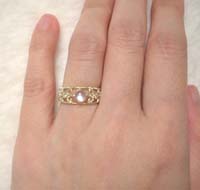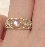 ほんとに綺麗で繊細で、、ずっと憧れていた透かし彫りのレースの指輪の雰囲気そのもの♪でした。ほっそり華奢な枠にお月様の光がそのまま丸く固まったみたいなムーンストーンが留まっていて、、こんな思っていた以上の指輪になって帰ってきてくれるなんて嬉しい(☆-☆)、、