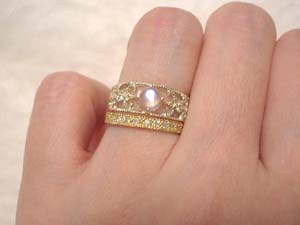 プチプチの向こうに新しい枠に収まっているムーンストーンのリングが見えたとき、今までの心配は一気に吹っ飛び、「わああっ、綺麗っ(☆-☆)」と叫んでしまいました。