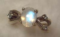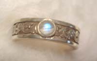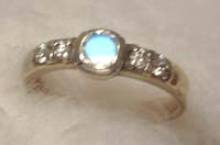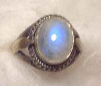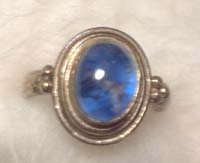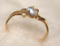 この指輪はたぶん初めて買ったブルームーンストーンの指輪で、青いシラーの出方がとても好きな石です。