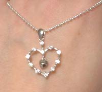 石はもちろんczですが、ほっそりしたラインにきらきら煌く石、、、いい感じかも(^^)。欲を言うと、真ん中で揺れるハートがもう少し丸みのあるぷっくりハートだったら良かったのになあ、、