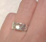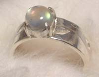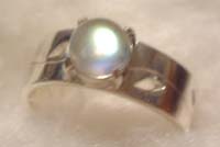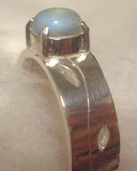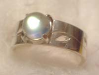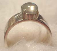 と思い、即問合せメールをしたのでした。すぐに感じの良いメールが返ってきて、出来るだけシンプルでアンティークっぽい枠にしたいこと、できれば覆輪留めで、、等こちらの希望を伝えると、すぐにイメージ用として幾種類か送ってきてくださった荒加工した銀のリングの上にこの石を置いた写真、、