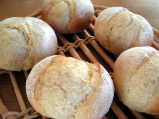 先週焼いたプチパン。図書館で借りた少しのイーストでゆっくり発酵パンのレシピです。この本のパンは、今までの1/4程度のわずかなイーストしか使わず、一晩かけてゆ~っくり発酵させてパン生地を仕込みます。いったいどんなパンが焼けるのか、実験気分でワクワクしながら作りました翌朝、発酵終了後の生地は、油脂が全く入っていないのに、やわらかくて、伸びのいい生地になっていて、とても扱いやすかったです。出来上がりは、イーストの化学臭の全くしない、香りのいいパンになりました♪粉の味がダイレクトに感じられるので、おいしい粉で作りたいパンかも。この本、今までのパン作りとはかなり違うので、とても新鮮で勉強になりそうです。手元において置きたいので、やっぱり買おうかな。この本のカンパーニュも本当においしそう。時間はかかるけれど、手間はかからないので、少しずつチャレンジしていこうと思います。早くオーブンをなんとかしなくちゃ・・・(T_T)【書籍】 少しのイーストでゆっくり発酵パン