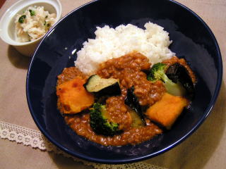 夫が飲み会などで夕食パス、という日は、子供たちが好き&ママが楽チンという理由で、カレーかマーボー豆腐になる確率が高い我が家(;^_^A今日もそんな子供とママの両方がご機嫌なメニューです♪うちの子供たちはかたまり肉があまり好きではないので、カレーは挽き肉で。野菜はみじん切りの玉葱とピーマン、あとはりんごを少々。隠し味に黒砂糖を加えた、甘~いおこさまカレーです。カレーだけだと野菜が不足しがちなので、ゆでたかぼちゃやブロッコリー、焼き付けたなすなどをトッピング。カレーの味で一緒に食べてもらう作戦です。あとは塩もみした大根と帆立缶のサラダ。これは黙っていても食べてくれる子どもたちの大好物。このサラダのために、帆立の水煮缶を切らさないようにしているといっても過言ではありません献立の和洋を問わないし、適当に作っても必ずおいしくできる(?)便利な名脇役です* * * * * * * * * * * * * * * *ちなみにこちらは末の忘年会シーズンでパパ不在時の夕食。マーボー豆腐、なすの揚げ煮、ほうれん草とツナのオイスターソース和え。子供向け献立としてはかなり見た目が地味ですが、どれも我が家では、子供ウケする味です。マーボー豆腐は4人分作っても、子供たちが代わる代わるおかわりするので、すぐになくなります~。我が家のマーボー豆腐は、テンメンジャンのほか、トウチを加えるのがポイント。ぐっと味が引き締まって、美味しくなります♪トウチ 100g