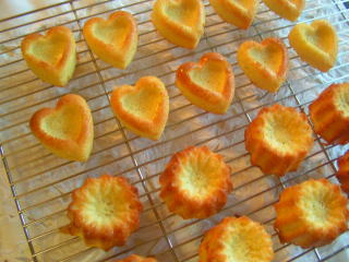 稲田多佳子さんのレシピで焼きました。たっぷりのバニラビーンズの入った香りのよいやわらかなケーキです。生地の配合や作り方はややバターの多いスポンジケーキといった感じで、パウンドケーキとジェノワーズの中間くらいのイメージ。レシピではマフィン型でしたが、仕上げに溶かしたホワイトチョコレートをのせるので、くぼみがあってチョコレートをのせやすい型を選びました。でも、やはりシリコン型はくぼんだ部分の焼き色がつきづらいです・・・(T_T)バタークリームのストックがあったので、ダコワーズも焼いて、コーヒー味のバタークリームにして、はさんで仕上げました。レシピはスーパーパティシエ辻口博啓のやさしい、お菓子のもの。シンプルな配合ながら、おいしくできて、お気に入りの味です明日から大所帯で蓼科に出かけるので、その手土産です♪シリコンフレックス「サバランハート」(中)【送料無料・即納OK!】SILICON FLEX シリコンケーキ型 カヌレ8個型ゴム製ダックワーズ型