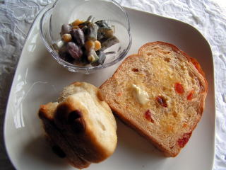 ゴールデンウィークに蓼科で買ってきたドライトマト。イタリア料理に使われる、固くて酸っぱいタイプではなく、甘くしてあって、ドライフルーツのようにそのまま食べられるタイプです。甘いドライトマトのことは、パン教室の先生から聞いたことがあって、食べてみたいな~と思っていたので、大量でしたが、母と半分こして購入(*^_^*)今回はそれをパンに焼きこみ、甘いトマトパンに。レシピはみかさんの手づくりパンのある楽しい食卓の「ぶどうパン」のレシピを参考にしました。粉200gに対し、たっぷり100gのドライトマトが入っています。リッチな生地に甘いドライトマトをちりばめるので、おやつにちょうどいいパンになりました。色もきれいなオレンジ色ちょっとドライトマトを戻しすぎてしまって、ちぎれてしまうもの多数(^o^;もっとしっかり水気を拭いてから加えないとダメですねぇ。こちらは先日焼いたイギリス食パン。ほんのりしあわせ。おうちパンのレシピです。イギリス食パンのレシピは数々ありますが、このレシピを知ってからは、我が家でイギリスパンといえばこればかり。焼きたてに皮がぴちぱちという音を聞いたのは、このレシピで焼いたときが初めてで、ちょっと感動的ですらありました。作りやすく、何より、トーストした時の美味しさは格別今朝は、このイギリス食パンにアボカドとカマンベールチーズをのせ、トーストにしていただきました。甘いトマトパンも少し。★トマト★ドライフルーツ☆色々選んで3袋!セットにすれば1000円です^^リコピンいっぱい♪* * * * * * * * * * * * * * * *なんと今日は小雨降る中、運動会は決行!かなり寒くて、一度しまいこんだ子供たちのトレーナーや上着を引っ張り出してくるハメに。私は冬の上着をほとんどクリーニングに出してしまったので、ペラペラのスプリングコートでガタガタ震えながら見学でした