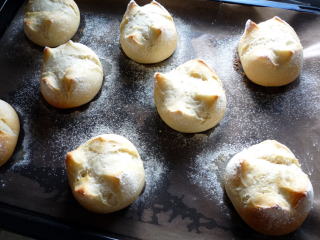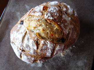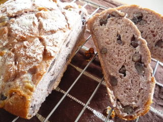図書館で借りた、こねなくても、パンができた!のレシピです。少量のイーストでじっくり発酵させるので、時間はかかりますが、手間はほとんどナシ。ちょっとしたすきま時間を利用してパンができます粉は150g程度の食べ切りサイズなので、日々のパンをちょこっと焼くのに便利そうです。ただ、生地は水分量が多く(リュスティックのような生地)なので、扱いは難しく、複雑な成型は無理なので、おのずとできるパンの種類は限られてくる感じでした。レシピではさつまいもでしたが、紫芋を買ってあったので、そちらを蒸して入れてみました♪クラストはパリパリ、クラムはもちもちで、天然酵母のパンのような出来上がりです。こねなくても、パンができた!