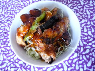 昨日の野菜のフライがたくさん余ったので(お肉のフライは完売)母子3人のお昼ごはんになりました♪ごはんの上に千切りのキャベツ、野菜のフライをのせ、甘辛くトロミをつけたたれをかけて出来上がり。たれはこうちゃんの簡単料理レシピのキャベツメンチで出てきた甘辛だれです。以前作った際に、キャベツメンチにとってもよく合っていたので、フライにも合いそう!と思って組み合わせました。ソースよりもやさしい和風の味で、ごはんにもよく合いました夏休みは、お昼からごはんを炊かないと足りないので、ホントにあっという間にお米が減ります(T_T)新米の季節までもつ予定だったミルキークイーンの在庫も底をつき、夏場のイマイチなお米を買わねば