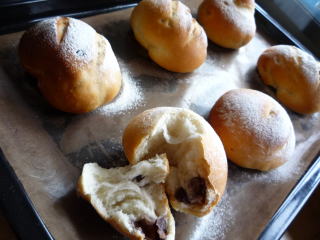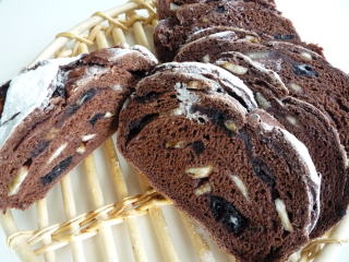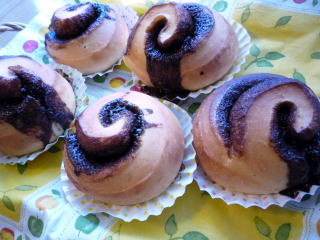ゆっくり発酵カンパーニュのレシピです。カンパーニュといえば、「素朴な食事パン」のイメージでしたが、この本で印象がガラリと変わりましたこれは、なんと、ココアたっぷりの生地にこしあんを塗り、砕いたバナナチップ&オレオを散らして巻いてあります意外な組み合わせでしたが、甘さ控えめのココア味の生地と甘いフィリングが実によく合う!カンパーニュ生地もおやつパンになるんだな~と新しい発見でしたゆっくり発酵カンパーニュ