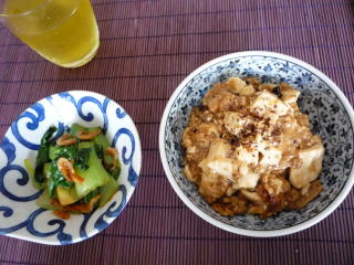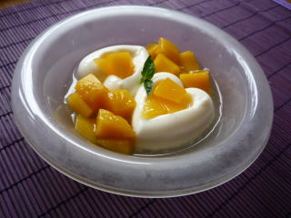 そうめんや冷やしうどんにかけるのに便利な肉味噌をたっぷり作ったので、それを利用してお昼は子供たちの大好物、マーボー豆腐に。お豆腐2丁使って、大人4人分作っても完売でした・・・肉味噌を鶏がらスープの素でのばして、お豆腐を加えるだけなので、すぐにできて、子供たちも喜ぶので、大助かりのメニュー野菜不足解消に、気休め程度ですが、青梗菜と桜海老のにんにく醤油和えを。青梗菜は、ごま油で炒めてから、お湯を注いでゆでてあります。デザートは杏仁豆腐。缶詰のマンゴーとクコの実を添えました。型はカヌレ型です。寒天で固めた冷菓は崩れにくいので、型でいろいろ遊べます♪マトファシリコン製ケーキ型カヌレ8個取り(イタリア製)
