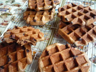 おやつに焼きました。柳瀬久美子さんのワッフル焼こう復刻版のレシピです。生地には溶かしたチョコレート&チョコチップが入り、チョコレート感いっぱいのワッフルですチョコレート星人の息子はウキウキで、さらにハーシーズのチョコシロップをかけて食べていましたが、娘はプレーンなワッフルのほうが好みだったらしい(;^_^A室温が高くて、バターの多いベルギーワッフル生地はすぐにベトベトになってしまいます。少し冷やして生地を締めてから焼いたほうがいいのかな~。ワッフル焼こう復刻版ビタントニオ ワッフル&ホットサンドベーカー VSW-400今使っているのは、昔から使っている国内メーカーのもの。パワー不足で焼くのにとっても時間がかかるので、そのうち買い換えたいのですが、壊れているわけではないので、なかなかキッカケがなく・・・(;^_^A直火式ワッフルメーカー直火式も兼用してます♪キャンプにも持参して、ホットケーキは食べないけれど、ワッフルなら食べる娘の朝ごはんに(*^_^*)