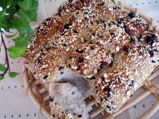 土曜日は娘の学校行事があったので、今日は振り替え休日。お弁当持参でデイサービスに行くので、お弁当パンとして焼きました。娘は家では白いご飯をよく食べるのですが、お弁当や給食だとほとんど食べません(*_*)パンだとお弁当でも食べるので、娘の好きそうなパンにしました。上田まり子さんのホシノ天然酵母のホームベーカリー・パンレシピのマーブルパン参考にしています。紫芋パウダーの入った生地とプレーンな生地を渦巻きにして、娘の大好物の黒豆の甘納豆を散らし、メッシュ型で焼きました。好きなものしか入れていないこともあり、お弁当は無事に完食して帰ってきました♪こちらは大人用のパン。ドライフィグとマロングラッセが入ったライ麦のカンパーニュです。ゆっくり発酵カンパーニュのレシピなのですが、今の時期、発酵のさせ方が難しい(@_@;)夏なら野菜室へ直行、冬は室温で放置すればよいのですが、今は室温が天気や時間帯によって変化する微妙なシーズン。こまめに生地の状態を観察しつつ、焼き上げました。ちょっと発酵不足気味だったかな~?でも栗といちじくの組み合わせは、ずっしりおいしさが詰まった感じがたまりません(o^∀^o)人気のメッシュパン型がこのお値段!簡単レシピつき♪ 【1周年記念セール】食パン丸型メッシュホシノ天然酵母のホームベーカリー・パンレシピ国産野菜パウダー(紫芋) 60g鹿の子黒豆300gそのまま食べてもおいしいしっとりタイプの甘納豆。豆類が苦手だった娘がこれを食べてから豆類OKになりました。