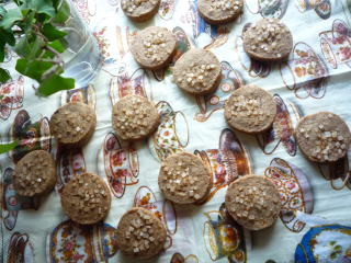 昨日のプチマフィンは無事に完売したので、今日は同じ本のレシピで、すりおろしたにんじんとアーモンドパウダーがたっぷり入ったタイプを作ってみました。そういえば、にんじんケーキって、お菓子を作り始めた頃に、バナナケーキと同じくらいよく作っていたな~。懐かしい今日はアイシングに紫芋パウダーを加えてピンクにし、アラザンを散らしてみました。フロスティングクリームのほうには、極小金平糖をパラパラと。このマフィンはワンボウルで出来るお手軽レシピなので、本体に手間がかからない分、デコレーションでいろいろ遊べて楽しめますカップケーキのとっておきレシピNEW! PATISSE パティシエ ミニマフィン型 ノンスティック 12pc 25cmピンクアラザン(15g)シルバーアラザン(15g)