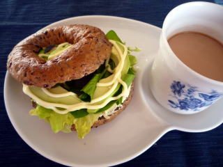 ぱん工房くーぷみかさんの・特別な日に焼きたいお気に入りパンのレシピです。五穀米をたっぷり加えたヘルシーなベーグル。最近は、あらかじめ調味済みの五穀米が売られているので、今回はそれを利用しました。直接パン生地に練りこめるので、とても手軽です。でも100gで300円するのを一度で使い切ってしまうので、かなり割高(@_@;)クリームチーズを塗り、レタス、サラダほうれん草、アボカドをサンド。むちむちしていて、ずっしり食べ応えのあるベーグルでした。ぱん工房くーぷみかさんの・特別な日に焼きたいお気に入りパン