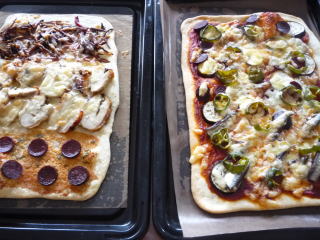今日は近所のテニスコートがとれたので、朝から家族でテニスアウトドアコートだったので、最初は肌寒いくらいでしたが、動くとやっぱり汗が出てきます今年からテニスを始めた息子ですが、ラリーも少~しは続くようになってきました。あと2~3年くらいは、まだまだ息子には負けたくないな~p(^^)q休日のお昼はいつもは軽めですが、今日はしっかり動いたので、ボリュームたっぷりのピザに。ピザ生地はできるだけ薄く伸ばして、具をたっぷり食べられるようにしました。右側は市販のピザソースを塗って、なす、ピーマン、サラミ、オイルサーディンをのせたもの。左側は冷蔵庫一掃ピザ(;^_^A奥は残り物のごぼうのきんぴら、真ん中は夕べのバジルチキン、手前は中途半端に残っていた明太子とバターをあわせて練り、しそを加えた明太子バターを塗り、サラミを散らしたものです。即興で作ったピザですが、意外にもきんぴらがチーズと相性がよくて、新しい発見でした子供たちには明太子バターが人気カリカリに焼き上がり、スナック感覚で食べやすかったようです。* * * * * * * * * * * * * * * *今日は私の誕生日だったので、夕食は夫と息子がビーフシチューを作ってくれました。夕方のんびりできて、何よりのプレゼントです(*^_^*)ケーキは大きな和栗のモンブランを買ってきてくれたので、自分のためのバースデーケーキ作りは省略バラのローソクを1個だけのせてお祝い(←ホントはもうあまりめでたくないけど)しましたそして、なぜか誕生日プレゼントはWii music確かにCM見て、「どんなソフトなんだろうね~」とは話していたけれど、そんなに欲しがってたように見えたのか・・・(;^_^A