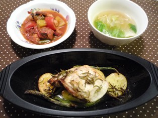 かじきと新じゃがのオーブン焼き(ふだんのおかず12か月より)たこ入りラタトゥイユレタスと玉ねぎのカレー風味スープ * * * * * * * * * * * * *シリコンスチーマー パピヨットグルメでオーブン焼きにしました。オーブンなので、耐熱皿でもよかったのですが、ブラックを購入したので、かじきやじゃがいもの白が映えるかな?と思って使ってみました。あらかじめオリーブオイルやおろしにんにく、レモン汁、ローズマリーなどでマリネしたかじきをマリネ液ごとオーブンで焼くだけなので、とってもお手軽!それだけだと味がボケそうだったので、市販のバジルソースを敷いてから、マリネしたかじき、レンジでチンしておいた新じゃが、いんげんを並べて焼いています。かじきがふっくら仕上がり、おいしくいただきましたたこ入りラタトゥイユは圧力鍋仕上げ。これがたこ?!と思うほど柔らかくなります。翌日は私のひとりランチのパスタソースに♪スープは生で食べるには少ししんなりしまったレタスを使い切るためのメニューです(^_^;)私は少しシャキシャキのほうが好みなのですが、子どもたちはくったりレタスのほうがいいらしい・・・(-_-;)シリコンスチーマー パピヨットグルメ:F68300 ブラック(APP0101)マストラッド(mastrad)とりあえず、2個だけ買いました。重ねて収納できるので、家族分揃えても大丈夫かな・・?