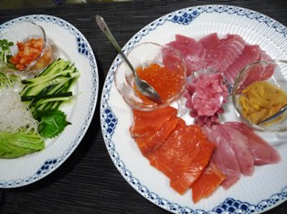父の日なので、ちょっとイベント感のある手巻き寿司にしました。息子がとにかくまぐろ&サーモン星人なので、お刺身はそれ中心。夫の好物、うにも奮発しました。野菜はきゅうり、かいわれ、アボカド、キムチ。ツナマヨはお刺身が苦手な娘用です。寿司飯は2合炊きましたが、全然足りませんでした枝豆はシリコンスチーマーで電子レンジ仕上げ。短時間でできるし、そのままテーブルに出せて、便利でした♪今日は、お肉も。黒毛和牛の焼き肉用をグリルパンでさっとあぶったもの。キムチと合わせて巻くとおいしい 野菜が足りないので、キャベツと小松菜の煮浸しも添えました。お寿司だったので、今日のデザートはケーキではなく、スイカでした娘は赤い部分がなくなるまで、必死に食べてました(^_^;)