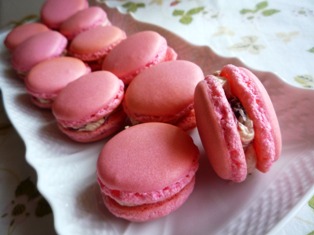 失敗続きだったマカロンさすがにめげてしまって、しばらく遠ざかっていました。しかし、このところのカラッとしたお天気は、乾燥させるのにもってこいのマカロン日和冷凍庫の卵白もたまってきたので、久しぶりに焼きました。ちょっと生地の段階で「アレ?!」という気がしたのですが、一応ピエもいっぱい出て、久々にそれらしく焼きあがりましたただ、ピエが出すぎて、中はぽっかり空洞が空いてます・・・(^_^;)マカロン作りは本当に難しい((+_+))生地には食紅を入れ、濃いめのピンクに染め、バタークリームには先日作ったいちごジャムを加えました。