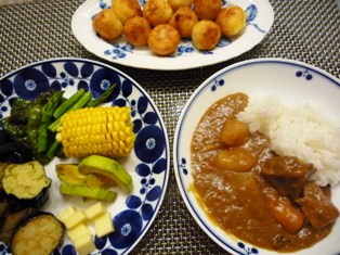 ダブル大根のカレー(てんきち母ちゃんレシピより)トッピングいろいろ(ブロッコリー、アスパラ、ゆでとうもろこし、揚げナス、アボカド、プロセスチーズ)まるぽて(てんきち母ちゃんレシピより) * * * * * * * * * * * * *本日も夫飲み会(^_^;)子供たちの好きなカレー&揚げもの系ポテトにしました。大根のカレーはおおぶりに切った大根とおろした大根で、まるまる1本を使い切ります。大根おろしがいい仕事してくれて、とても甘くてマイルドなカレーになります仕上げには牛乳を加えるので、さらにマイルド~♪お子様向きのカレーです。まるぽてはゆでてつぶしたじゃがいもに片栗粉、牛乳を加え、プロセスチーズを包んで丸めて揚げています。カリカリの食感のポテトの中からチーズがトロ~っと出てきて、間違いなく子供ウケするメニューと思われます