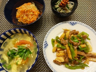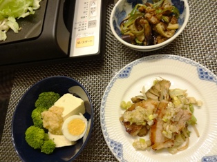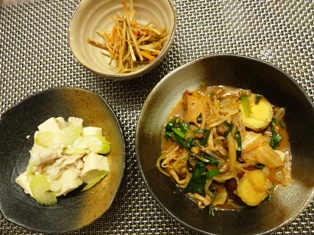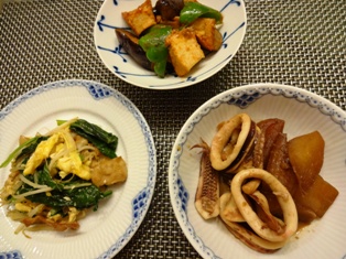 わた入りいか大根厚揚げとなす、ピーマンのピリ辛炒め(おうちでカンタン!韓流ごはん(2)より)小松菜と豚肉、卵の炒め物 * * * * * * * * * * * * *いかは煮汁でさっと煮た後、いったん取り出しておき、いかの旨みが出た煮汁で大根を煮ていきます♪大根に味がしみたらいかを戻し、ほぐしておいたいかのわたを加えて仕上げ。コクがあって、やわらかないか大根の出来上がり~(*^_^*)メインがややボリューム不足なので、副菜は豚肉や厚揚げを使った炒め物にしました。小松菜は束が細かったので、もやしをプラス。厚揚げの炒め物にはコチュジャンを使ってピリ辛にしています。厚揚げには豆板醤やコチュジャンなどのピリ辛味が意外によく合う豚肉と野菜の塩麹炒めさつまいものはちみつバター炒めキャベツのおかか醤油和え