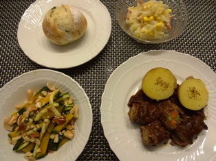 牛肉の野菜巻き ドミグラス煮込みズッキーニとかぼちゃのナッツオイルがけサラダ(若林三弥子の蒸しいため完全マスターより)キャベツとコーンのサラダハーブパン * * * * * * * * * * * * *毎月お取り寄せしている牛肉で、すき焼き用のお肉をまだ使っていなかったので、(←暑くてすき焼きという気分ではないし)にんじんとアスパラを巻いてソテーし、市販のドミグラスソース缶で煮込みました。(普段はこま切れ肉が多いので、こんな風に巻けない・・・^^;)ちょっと味が濃かったので、新じゃがを丸ごと圧力鍋で蒸したものを添えて中和。ズッキーニとかぼちゃのサラダは最近気に入っている食べ方です。それまでズッキーニはあまり料理方法のバリエーションがなかったのですが、この蒸しいため本ではけっこう変わったものが載っているので、最近はズッキーニの登場回数がぐんと増えました。ハーブパンはドライのタイム、バジル、ローズマリーに粒こしょうが入っています。後味がスーっとするので、濃い味のお肉料理にぴったりでした。今日も息子と2人ランチ(+o+)小学生の娘が登校しているというのに、体力の有り余っている中学生がまだ夏休みって・・・今日のパスタは、「はなまるマーケット」の醤油麹レシピを参考にしました。ゆでてから氷水で冷やした細めのパスタに、たっぷりの大根おろし+ツナ+醤油麹+大葉。パスタはレンジでゆでたので、火をまったく使わずに済みました(^o^)味付けは醤油麹だけなのですが、かなりいい仕事してくれます簡単なわりに意外においしくて、また作りたい味でした普段、パスタはあまり好きではない息子もこういう和風ならOK。大根おろしも辛いと嫌がるので、外側をかつらむきして、水分の多い内側の甘い部分だけを使いました。(手のかかる坊ちゃまです(-_-メ)息子は辛いもの、酸っぱいもの、苦いもの、口当たりがスジっぽいもの(ねぎとかアスパラとか・・・)が苦手。そろそろ大人の味覚になってほしいーーー(*_*;(というか、やわらかくてマイルドなものが好みというお爺さんぽい味覚という点ではある意味大人?)その点は娘の方が大胆で、受け入れ幅が大きいかも。そんな息子の好みのおやつがコレ↑地味~なわらびもちです。わらび餅粉に分量よりも多めの水を加え、黒砂糖少々を入れて練り、スプーンですくって氷水に落として固めて、黒ゴマきなこをかけています。すぐにできて、作りたてがおいしいホームメイドならではのおやつ。時間が経つとあっという間に硬くなってしまうので、すぐに食べるのがポイントです。キング わらび餅粉★税込1980円以上で送料無料★キング わらび餅粉(150g)