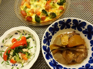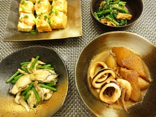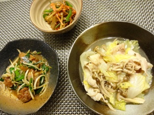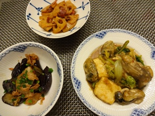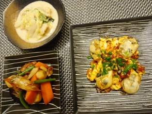 牡蠣のチリソース豚バラと根菜の煮物白菜とホタテのミルク煮